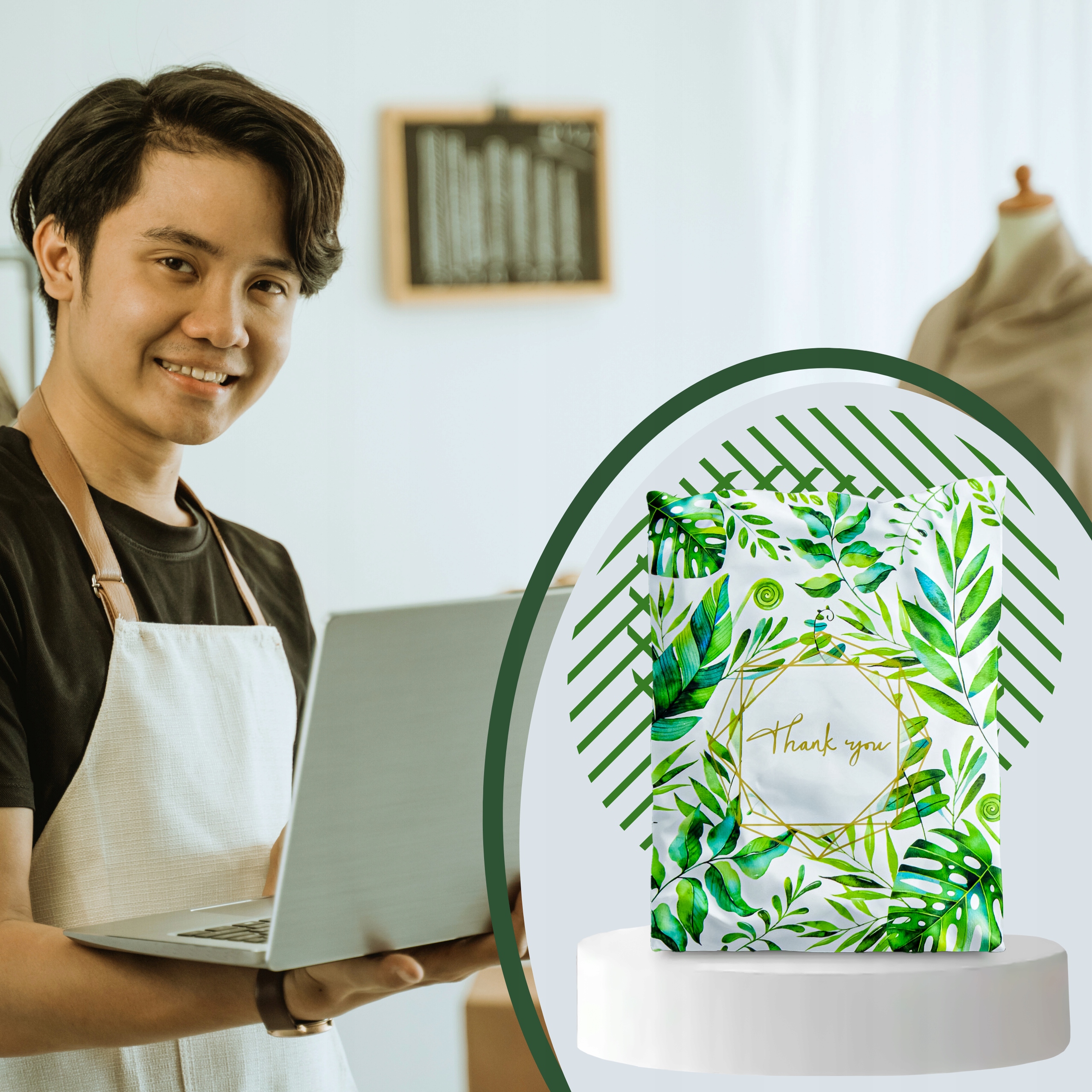 ✅ Профессиональный внешний вид: Упаковка из разноцветной фольги с мотивом джунглей и надписью Надпись Спасибо выглядит великолепно эстетично и профессионально. Это важно, особенно если вы хотите оставить положительное впечатление у своих клиентов с первого взгляда на упаковку.