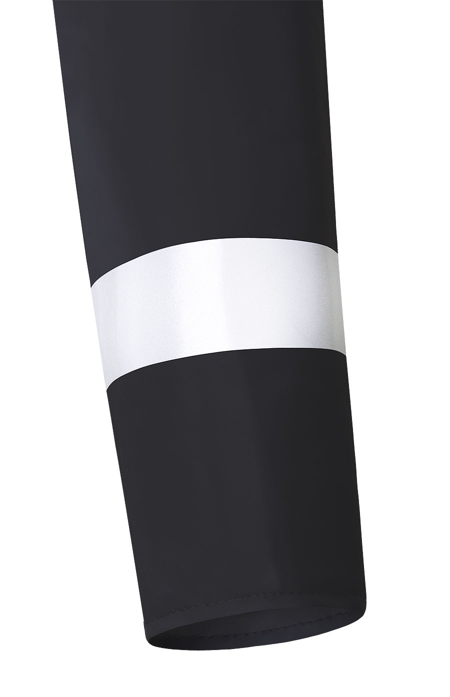 Черная защитная куртка, предупреждающие ленты, светоотражающие элементы