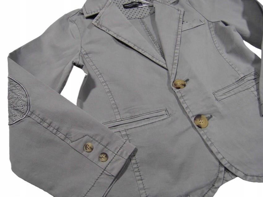 Застегивается на пуговицы, нашивки на локтях