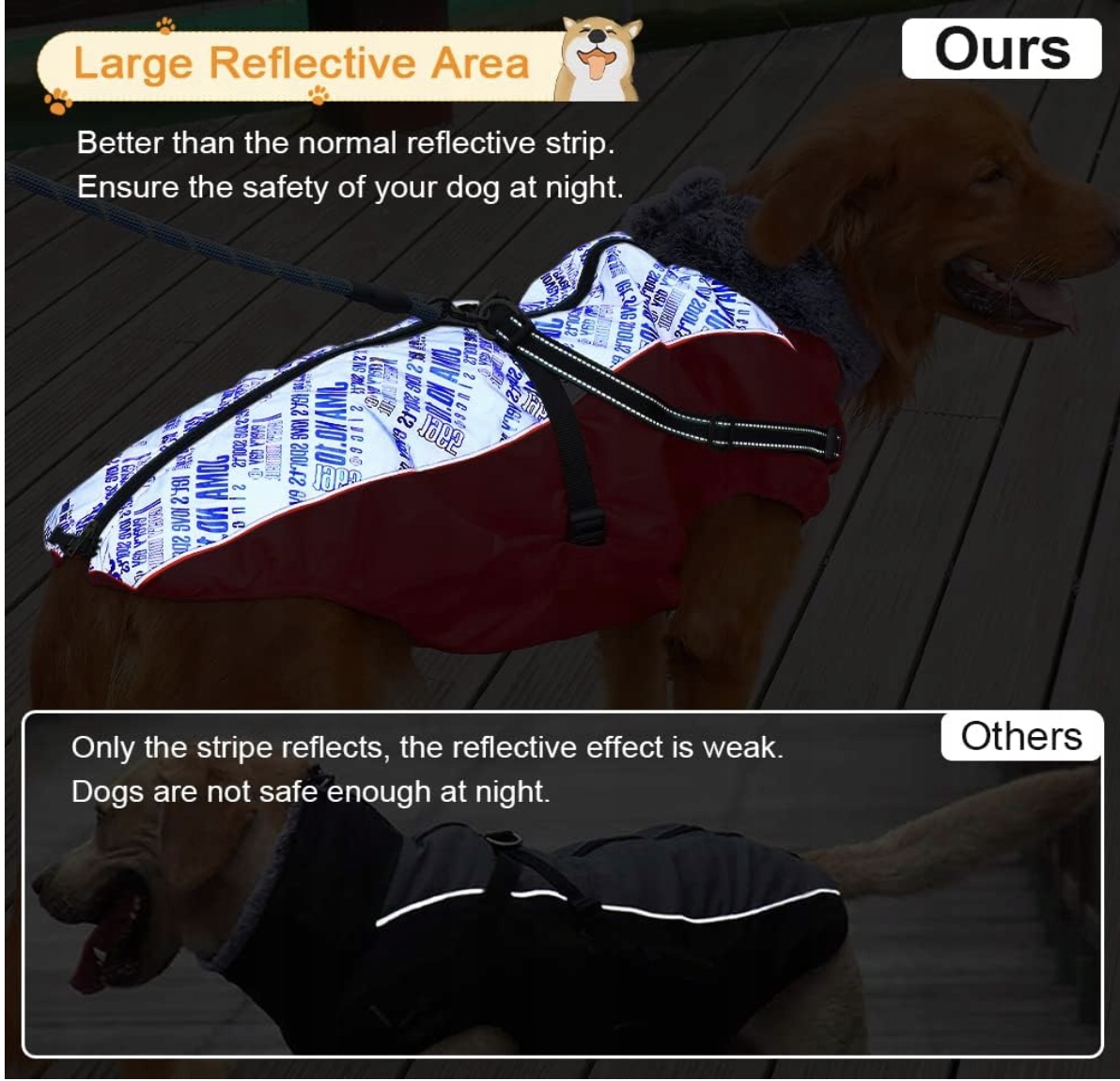 - 【Большая отражающая поверхность】 В отличие от другой одежды для собак среднего размера, светоотражающими являются только полосы. В нашей шлейке для собак используются полностью светоотражающие материалы: не только хлопковый ремень отражает свет, но и зимний жилет для собак отражает свет, что обеспечивает безопасность при ходьбе в ночное время.