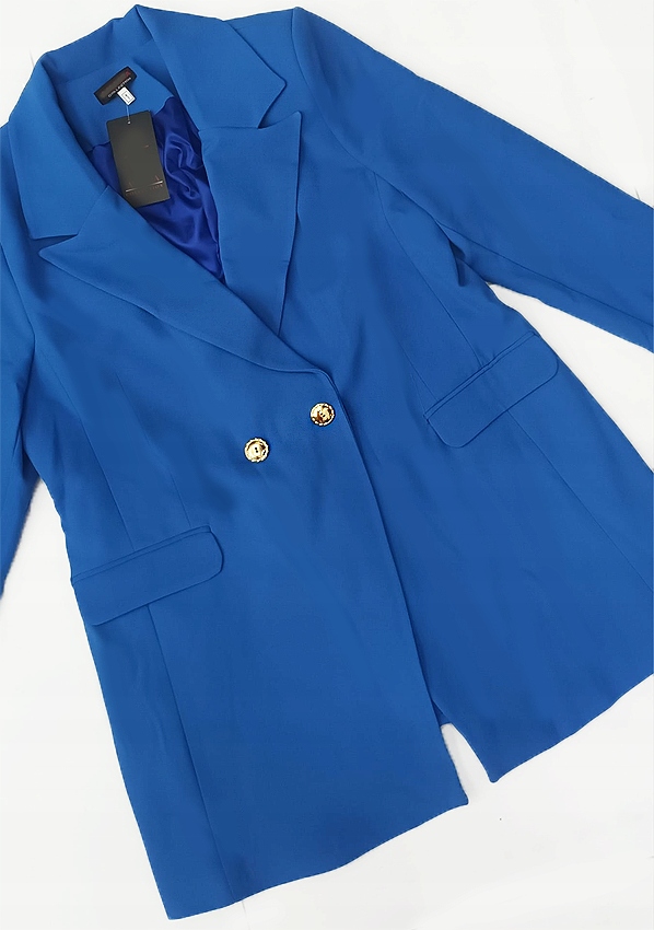 Очаровательный классический длинный жакет простого и элегантного кроя. Куртка имеет длинные рукава и застегивается на декоративные золотые пуговицы. На подкладке, рукава без подкладки.
