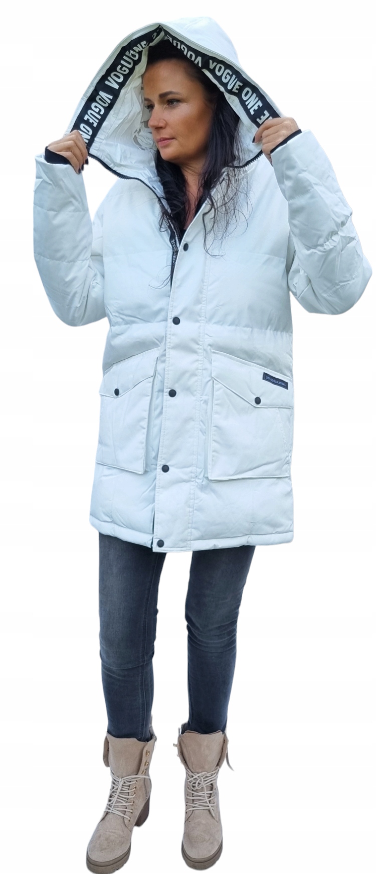 КУРТКА ЖІНОЧА ТЕПЛА, КАПЮШОН БІЛИЙ, ПАРКІ ЗИМОВА, УТЕПЛЕНЕ ПАЛЬТО, розм. Л