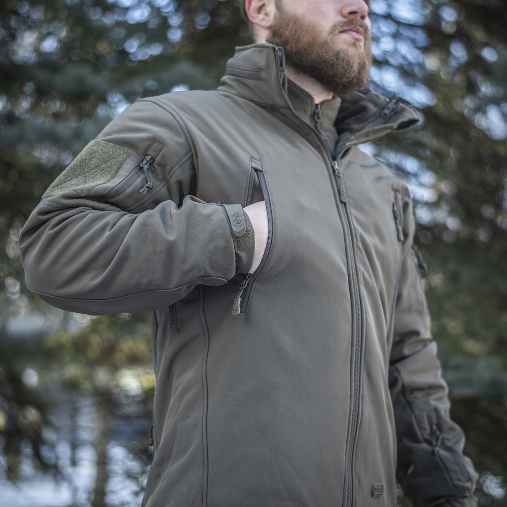 Куртка M-TAC Soft Shell на подкладке изготовлена из межслойной полиуретановой мембраны, защищающей от непогоды. Внутри тонкий флис. В этой модели производитель также добавил съемную флисовую подкладку, которая застегивается на молнию (можно носить как отдельный предмет одежды). Уникальными свойствами изделий из софтшелла являются небольшой вес и сочетание двух слоев одежды в одном. Softshell сочетает в себе внешний слой (для защиты от ветра и непогоды) и изолирующий внутренний слой. Поверхность отражает не только влагу, но и грязь. Кроме того, мягкий и обтекаемый материал делает его более удобным в ношении. Молния произведена компанией YKK. Молния качественная и без видимых проблем выполняет свою функцию.