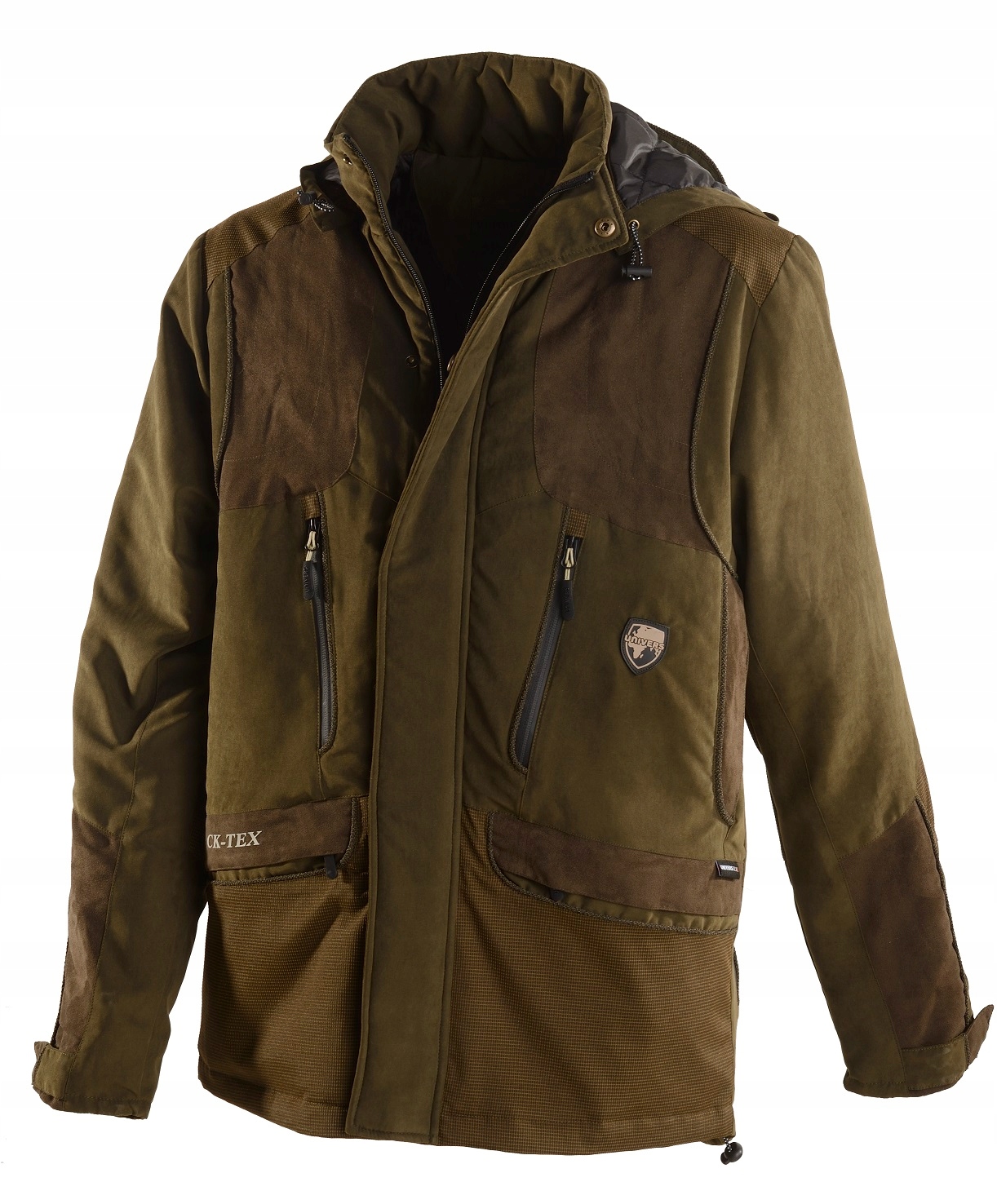 Удобная, функциональная и теплая куртка из бесшумной ткани из микрофибры. Оснащен ветрозащитной, водонепроницаемой и дышащей мембраной Univers-Tex, обеспечивающей комфорт использования в сезон с осени до ранней весны. Дополнительная согревающая стеганая подкладка согреет в прохладные и холодные дни. Куртка имеет усиления в нижней части переда и на локтях из прочного полиэстера со структурой рипстоп. Куртка имеет множество функциональных карманов, молнии которых на 100% защищены от дождя: 4 передних кармана, один большой задний карман по всей спине и внутренний. Завязки внизу обеспечивают идеальное прилегание куртки к телу. Съемный и регулируемый в трех плоскостях капюшон с козырьком, предотвращающим попадание дождя.