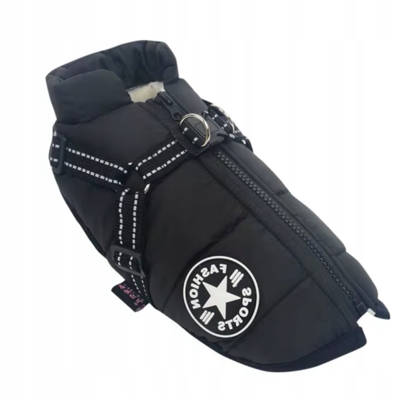 КУРТКА ОДЯГ ДЛЯ СОБАКИ ЖИЛЕТ ТЕПЛИЙ ЗИМОВИЙ З ПІДТЯЖКАМИ ЧОРНИЙ