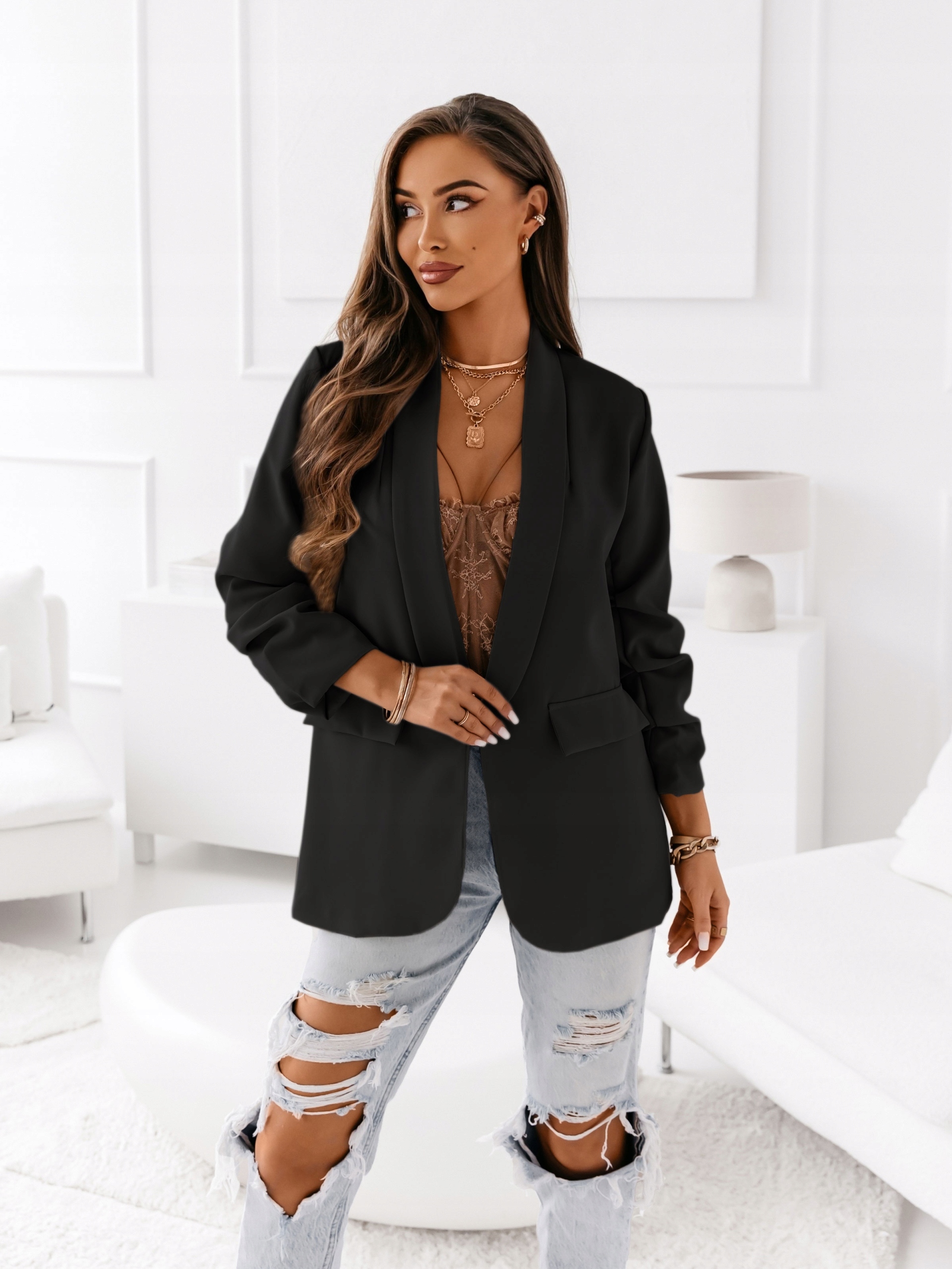 Элегантный жакет обязательно должен быть в гардеробе каждого. Оборки на рукавах – интересное дополнение, благодаря которому ваша укладка не будет выглядеть скучной. Эта куртка будет хорошо сочетаться практически с любым стилем – будь то более свободный спортивный стиль, работа или особый случай. Эта модель непременно дополнит ваш наряд и добавит ему шарма. Доступен в нескольких цветах на других наших аукционах.
