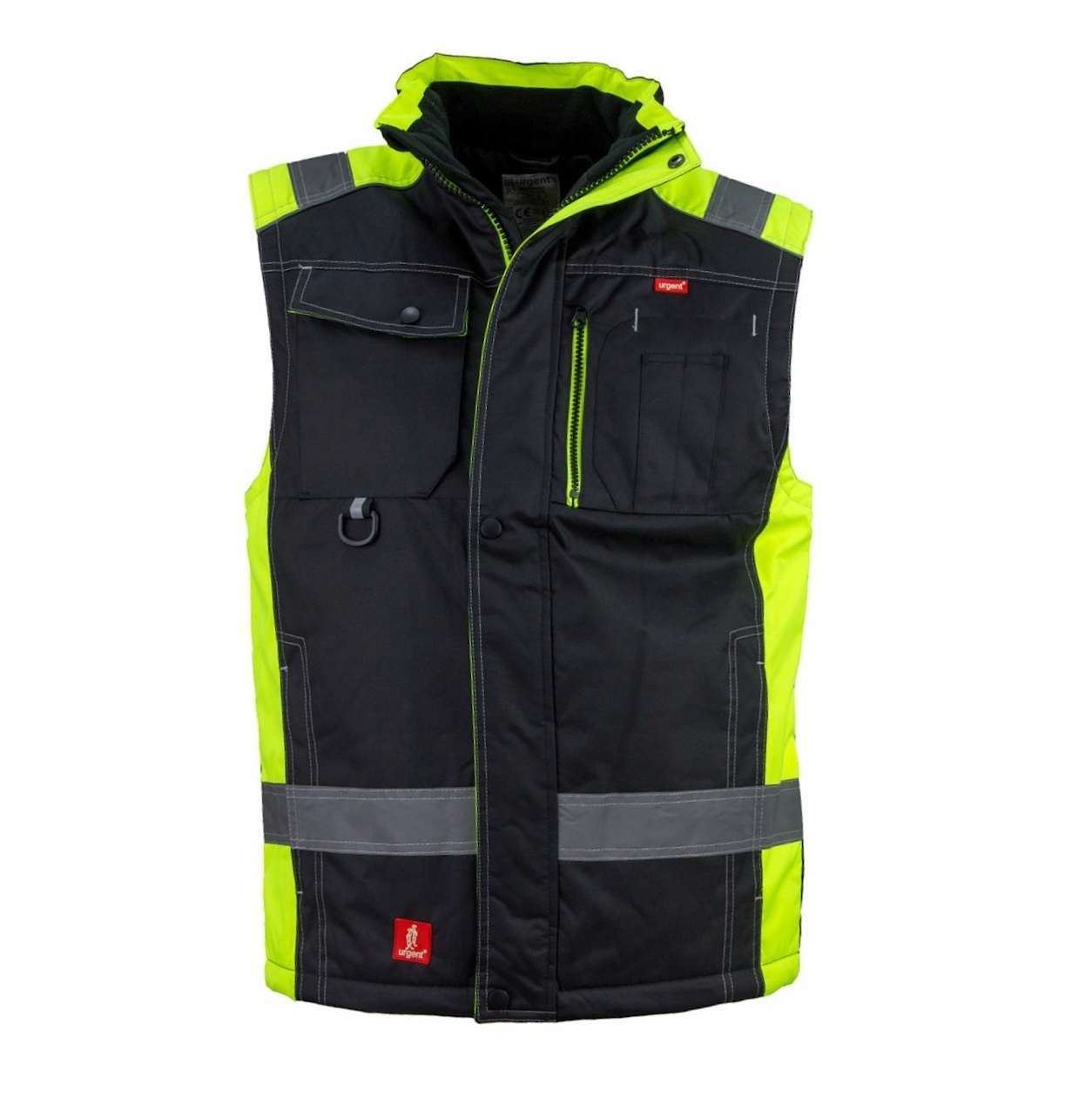 Вставки флуоресцентного цвета и отделка повышают безопасность пользователя. В жилете используется горизонтальная светоотражающая полоса в передней части туловища, что повышает безопасность пользователя и, следовательно, снижает риск несчастного случая.