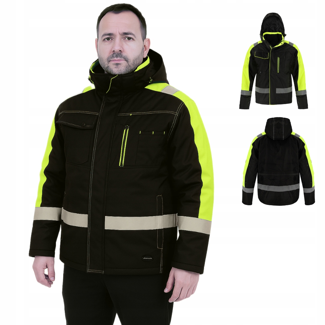 ЗИМНЯЯ РАБОЧАЯ КУРТКА С КАПЮШОНОМ, Светоотражающая, утепленная, ВОДОНЕПРОНИЦАЕМАЯ XXL