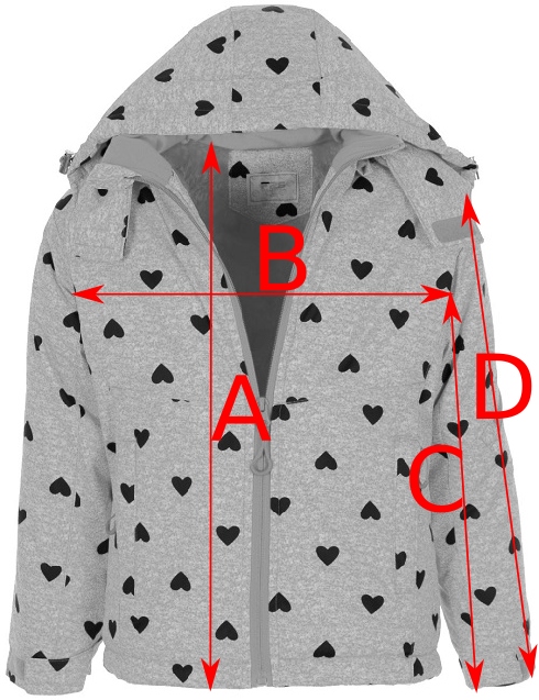 - B - 38,0 см (ширина под мышками),