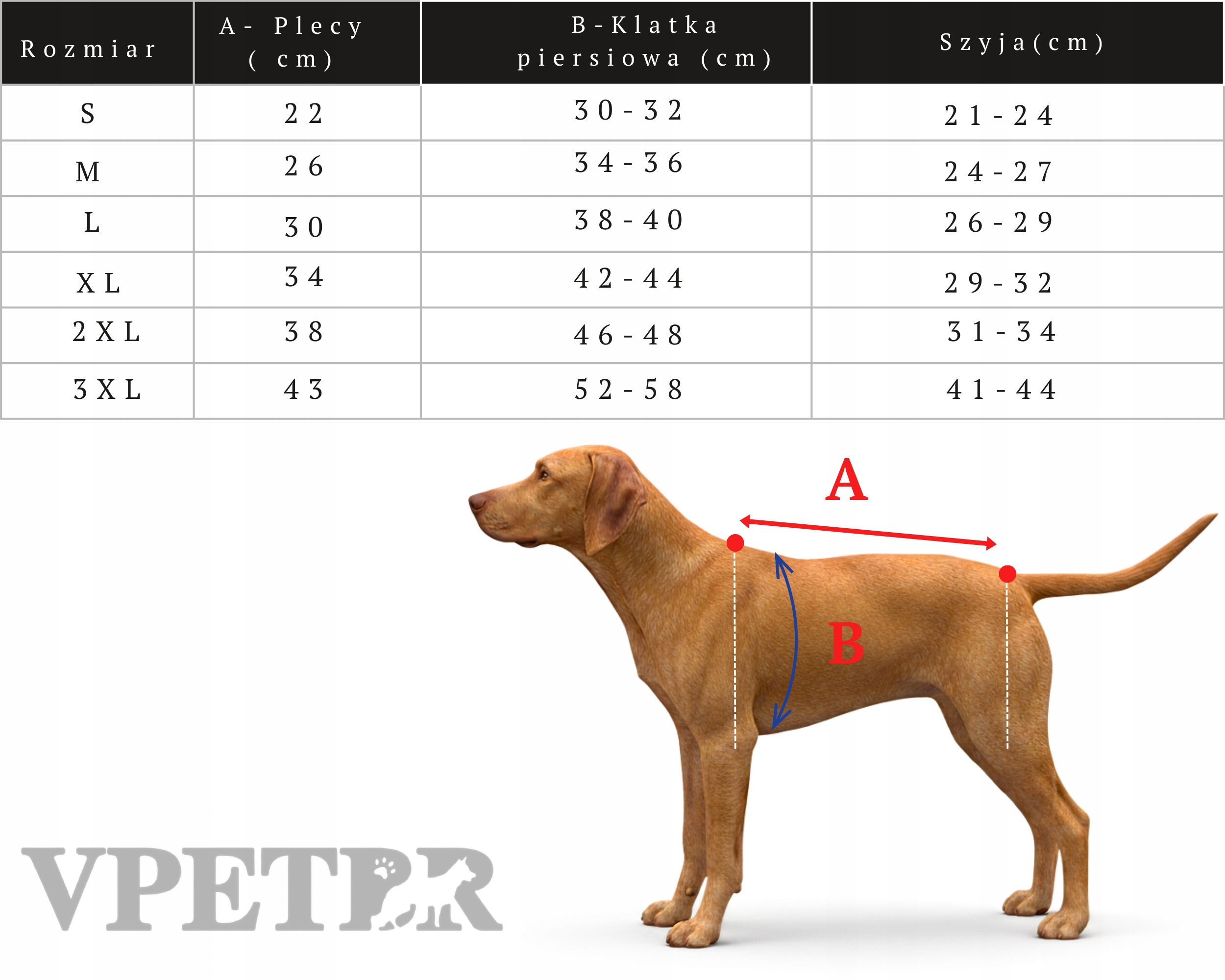 • Если длина спины вашей собаки длиннее, чем указано в таблице размеров, используйте в качестве ориентира измерение обхвата груди.