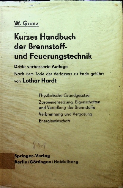 Kurzes handbuch der Brennstoff und Feuerungstechnik W Gumz