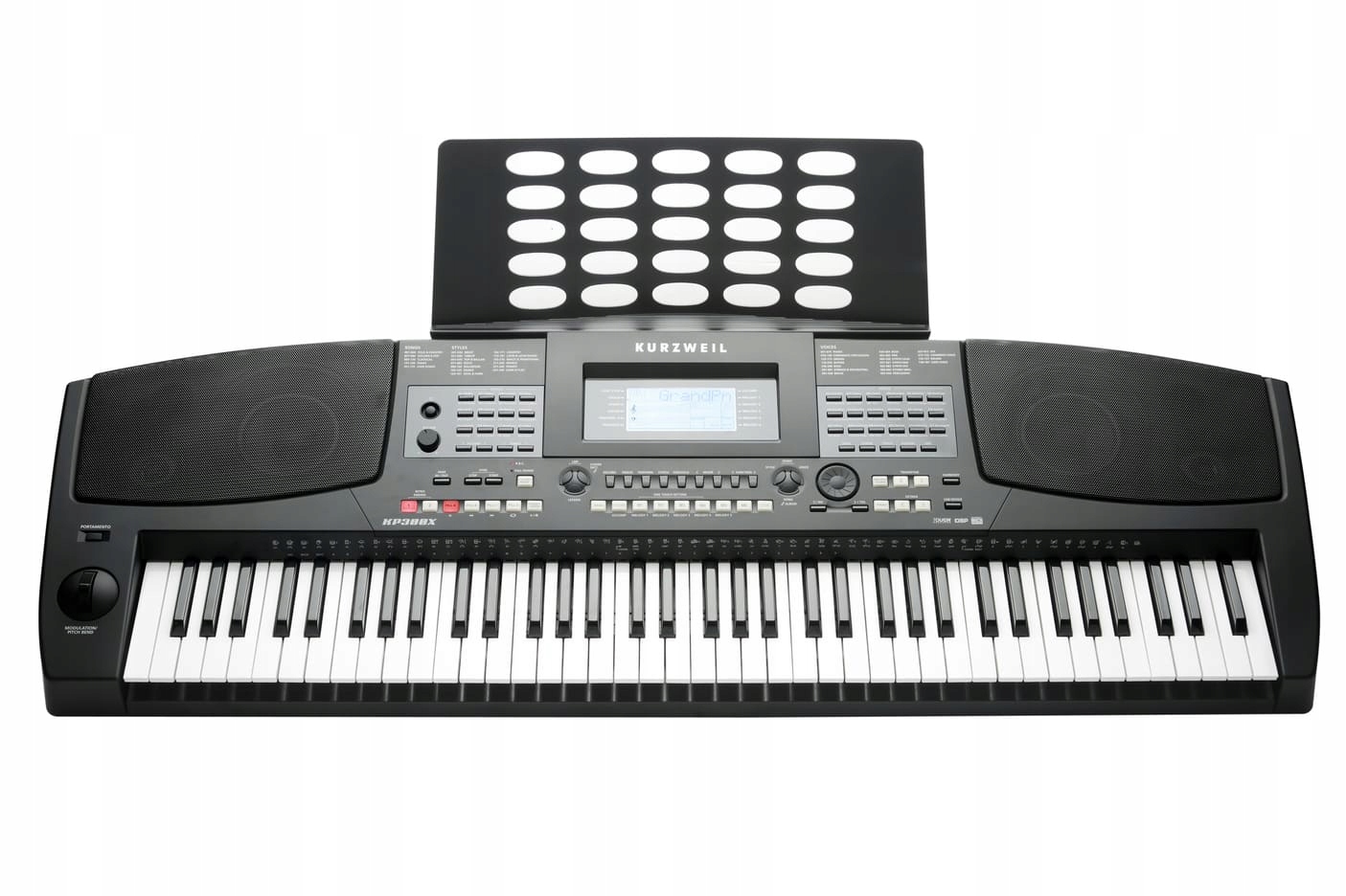 KP300X помещен в привлекательный корпус синтезаторного типа, оснащен съемным рабочим столом и встроенной стереосистемой с 4 динамиками.