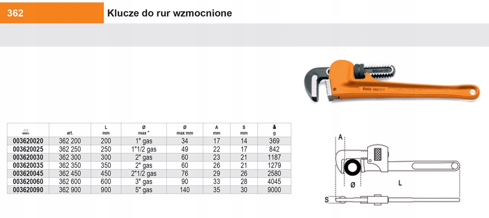 ЩИПЦЫ ТРУБНЫЕ КЛЮЧИ BETA 362 300 мм 2 дюйма