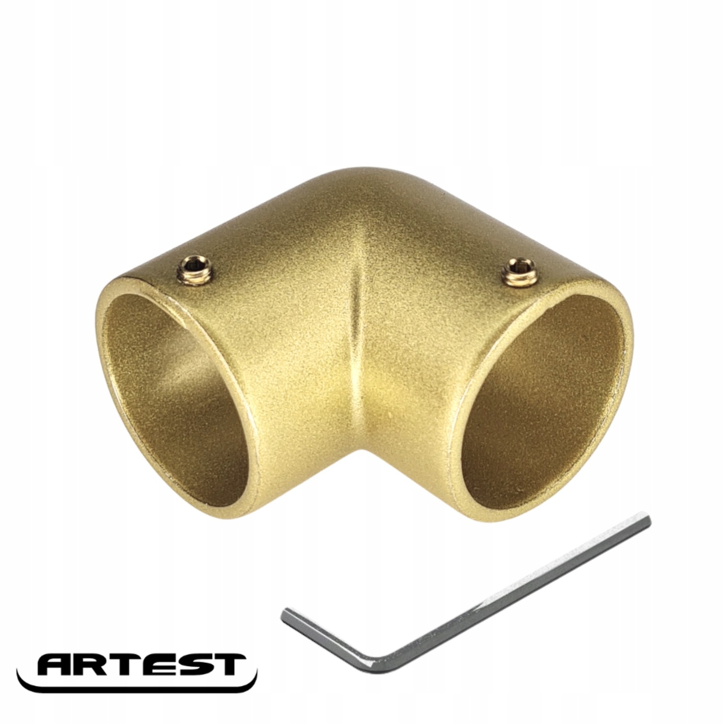 Уголок 90 градусов, колено с замком для трубы, мебельный стержень фи25 мм, системы труб, цвет матовое золото, польский производитель