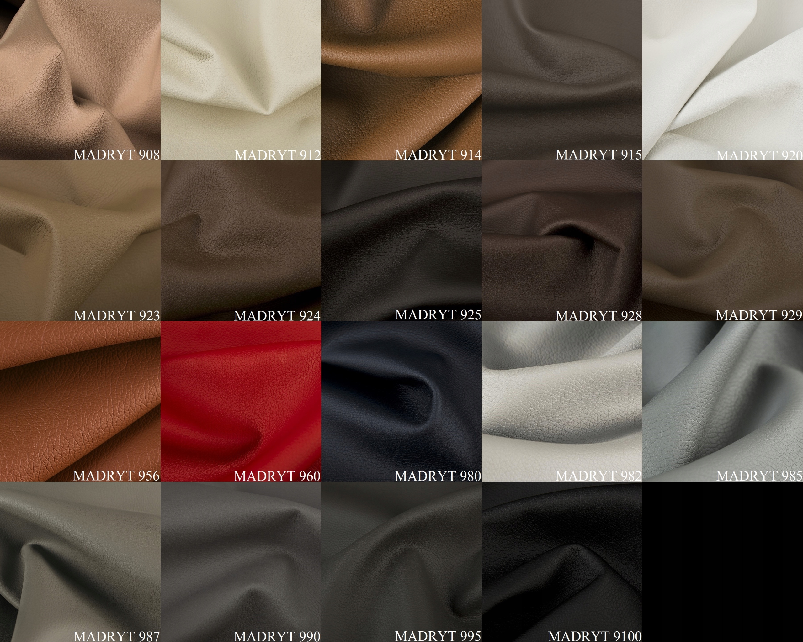 Ткань Мадрид – имеет рисунок с четко выраженной структурой кожи, что делает ее идеальной имитацией кожи. Рекомендуется для использования на часто используемой мебели из-за устойчивости к загрязнениям.