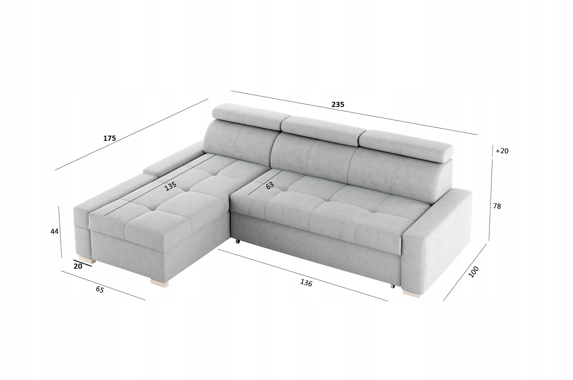 Характерной особенностью угла являются три движущихся подголовника, , так что вы можете соответствовать высоте спинки с индивидуальными потребностями.