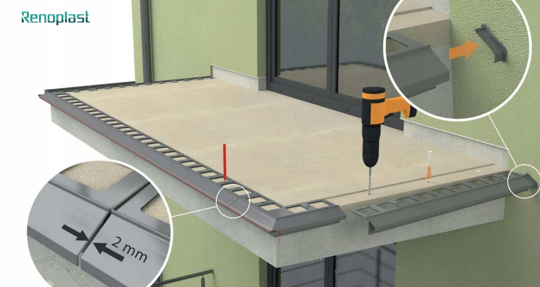 Внешний угол с углом 135 футов для карнизного профиля Renoplast K100R (пол из керамической плитки)