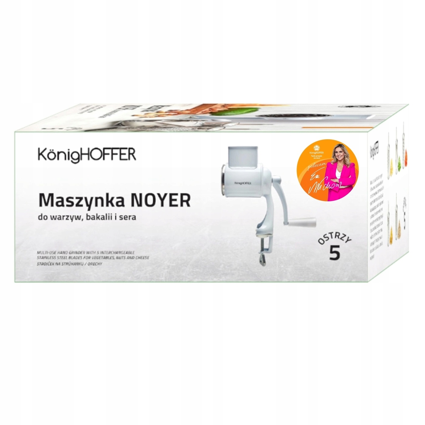 Лезалка для сыра и сухофруктов Konighoffer Noyer с 5 лезвиями изготовлена из металла. Его прочная конструкция также проста в обслуживании. Барабаны с различными лопастями изготовлены из нержавеющей стали. Шуруп, обеспечивающий крепление к столешнице, подходит для прикручивания кромки толщиной не более 30 мм. В комплект входит профилированный толкатель для ингредиентов. Благодаря этому вы избежите травм рук при заточке их бритвой. Различные лезвия позволяют вам свободно выбирать, хотите ли вы для пиццы ломтики, пюре или крупно натертый сыр. Хранить слайсер Нойер удобно, поскольку изделие имеет компактные размеры. Вы также забудете о беспорядке на кухне, который обычно сопровождает измельчение и измельчение. Продукт рекомендует Ева Вахович. Как амбассадор бренда Konighoffer, она горячо и с улыбкой рекомендует его для домашнего использования. Вместе с ним вы получите свой рецепт для дома. Это один из лучших вариантов в этой категории!