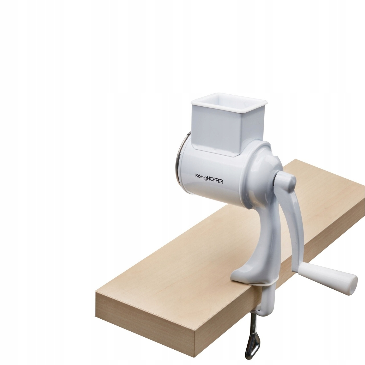 Другая информация: - металлическая бритва с белым порошковым покрытием, - режущие пластины из нержавеющей стали, - кривошипная рукоятка и пластиковый толкатель, - монтаж на столешницу толщиной не более 3 см, - пользователь руководство включено в комплект поставки