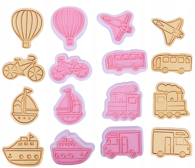 Wykrawacze ze Stemplem POJAZDY wz2 foremki 8szt samochód samolot statek