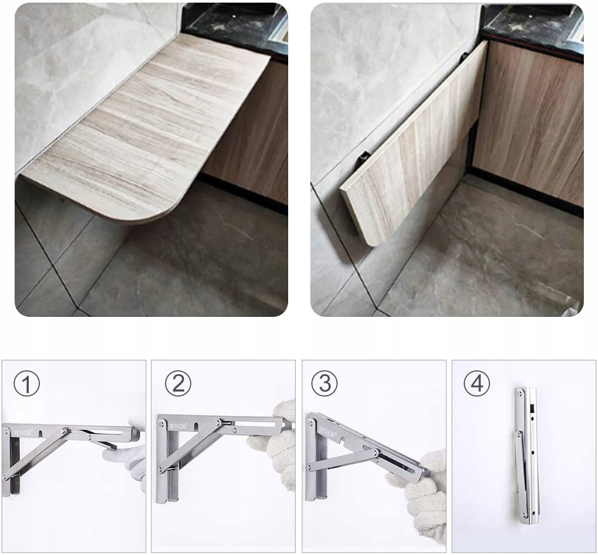 - Легко собирать и разбирать, долговечен и стабилен. Вам просто нужно убедиться, что два складных кронштейна параллельны друг другу и расположены вертикально по отношению к стене.