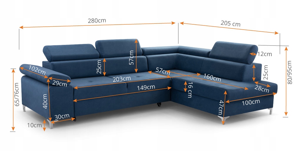 Угловой диван оснащен спальным местом 203х127см и контейнером для постельного белья. Спинка углового дивана обита материалом, подходящим по цвету к целому.