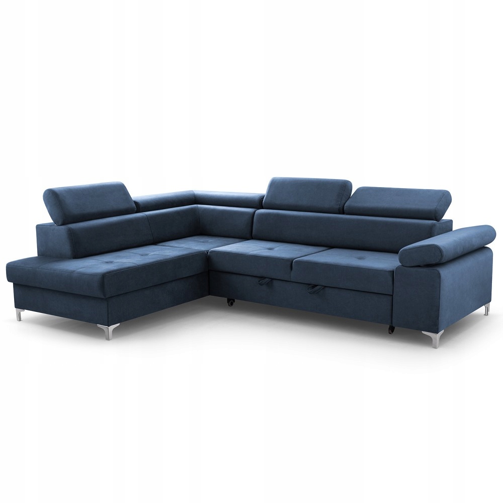 Угловой диван МАДРИТ с функцией сна доступен в интересных цветах, а современные серебряные ножки придают современный стиль.