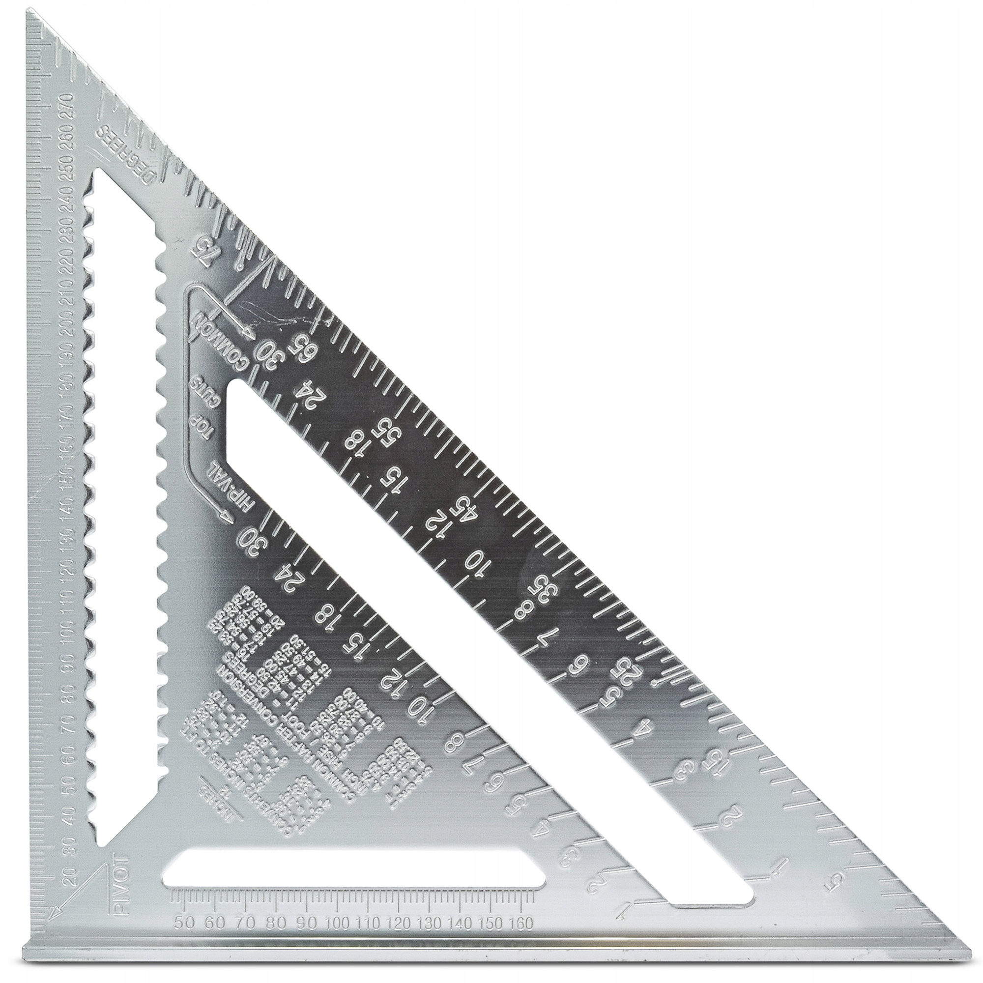 Квадрат имеет ширину 3 см, дюймовую и метрическую шкалу. Кроме того, это позволяет удобно вести пилу вдоль руки. На самой длинной стороне расположена шкала транспортира, позволяющая быстро определять и измерять углы от 0° до 90°.