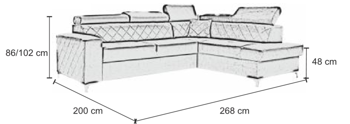 Изделие – идеальный способ придать вашему интерьеру эстетичный и роскошный ГЛАМУРНЫЙ стиль. дом! . Помимо практичной спальной функции, мебель имеет контейнер для постельного белья и механизм для легкого раскладывания. Угловой диван стоит на стильных хромированных ножках, которые являются прекрасным дополнением к мебели.