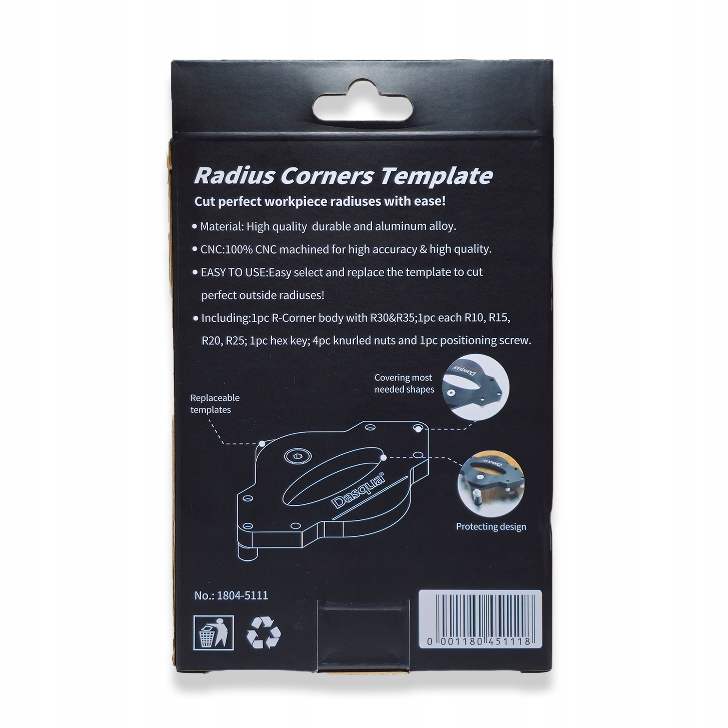 Профессиональный шаблон для изготовления радиусов и фасок с помощью фрезерного станка. Он позволяет быстро добиться идеальных внешних арок. Модель Dasqua 1804-5111 включает в себя самые популярные радиусные размеры, используемые в столярном деле.