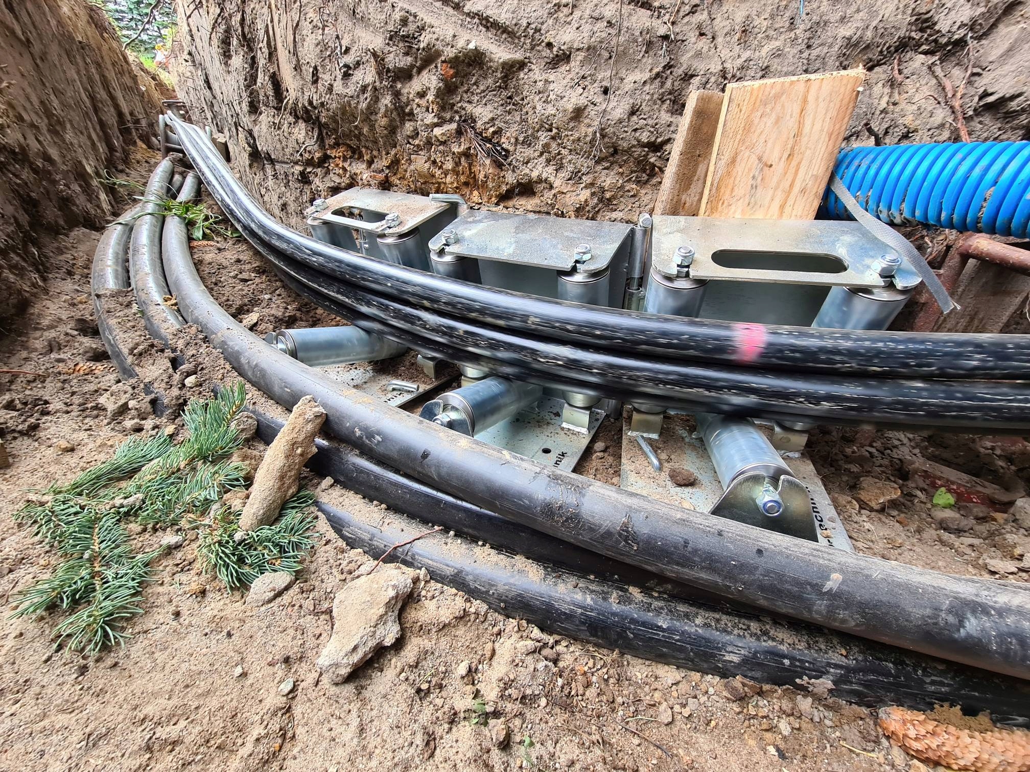 - Чем больше роликов в изгибе, тем меньше нагрузка на ролики и тем легче протягивать кабель (пучок кабелей).