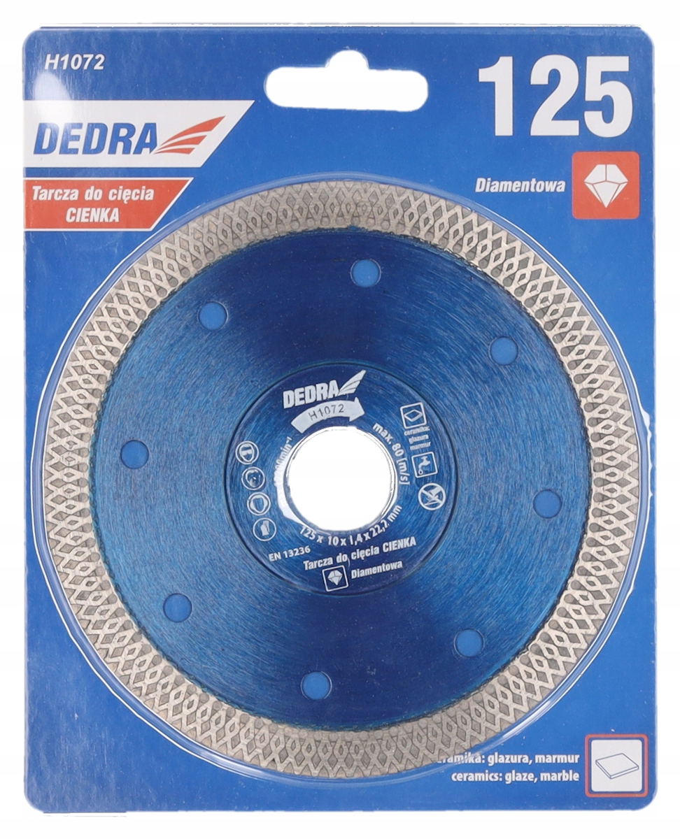 Дополнительно в комплект входит алмазный диск DEDRA H1072:
