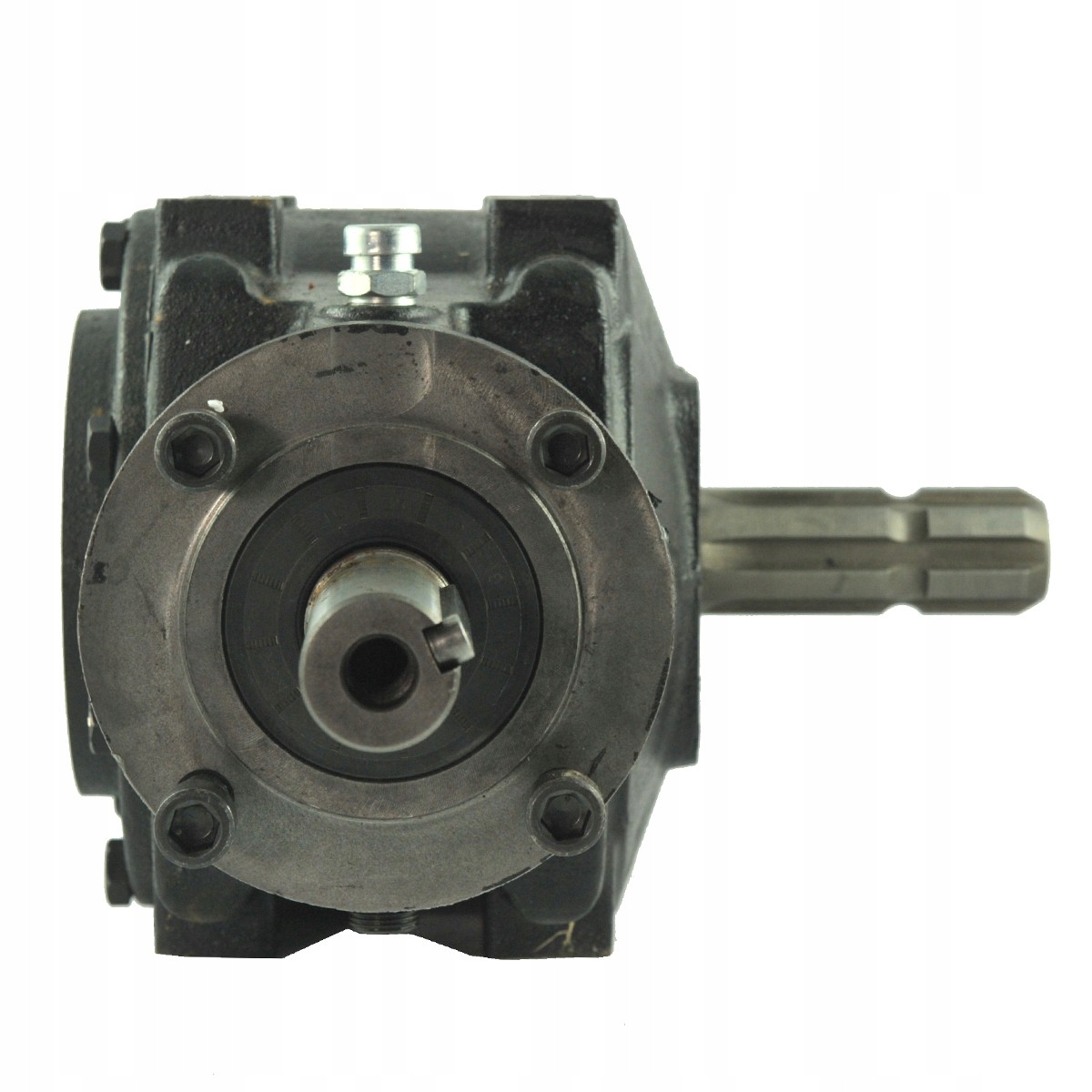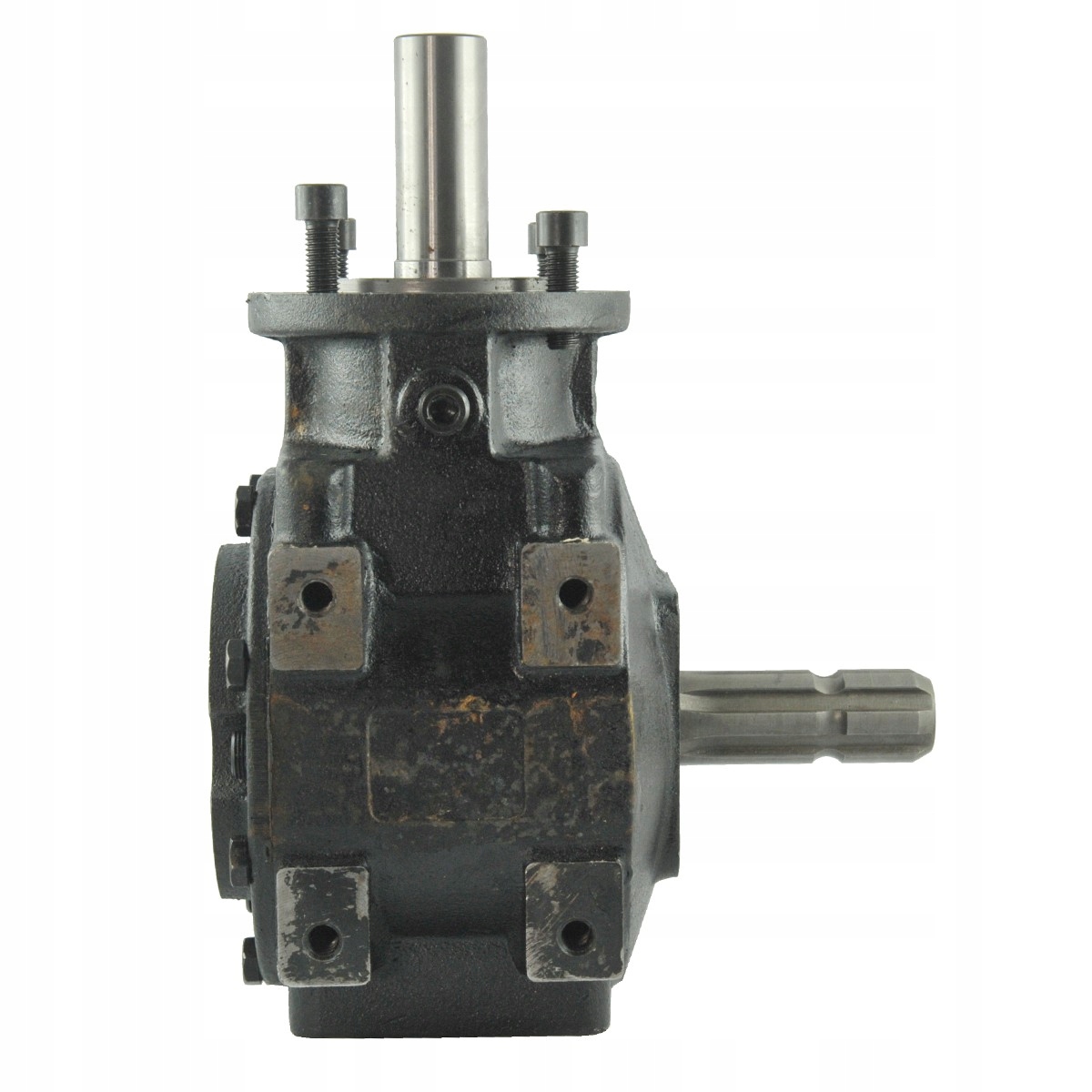 Коническая передача для заднебоковых косилок типа AGF марки 4FARMER и других. Редуктор в косилках AGF расположен с левой стороны косилки, стоя позади машины, и соединяется непосредственно со шкивом, поэтому редуктор имеет левое направление вращения выходного вала (движение против часовой стрелки).
