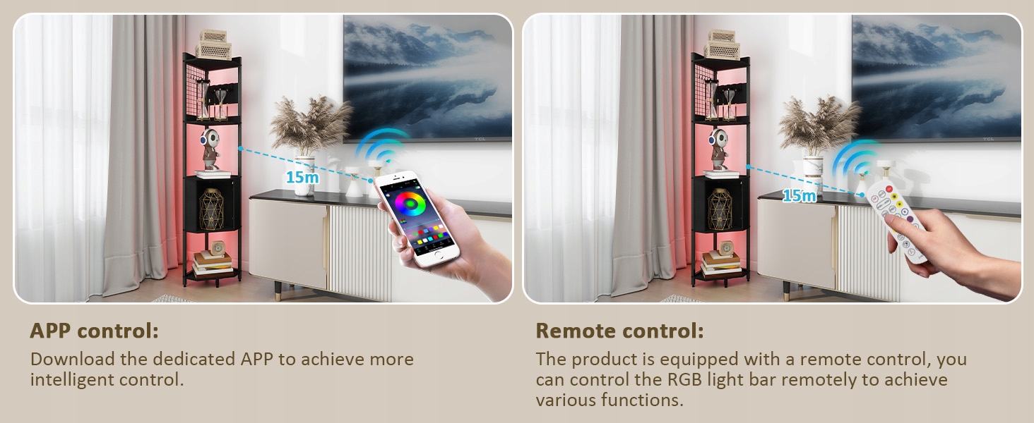 【Светодиодная световая лампа】: эта угловая подставка специально оснащена светодиодными полосками, которые доступны в разных цветах. Это может создать удобную атмосферу ночью, улучшить игровой опыт после размещения в игровой комнате и увеличить атмосферу во время просмотра фильмов ночью после размещения в гостиной.