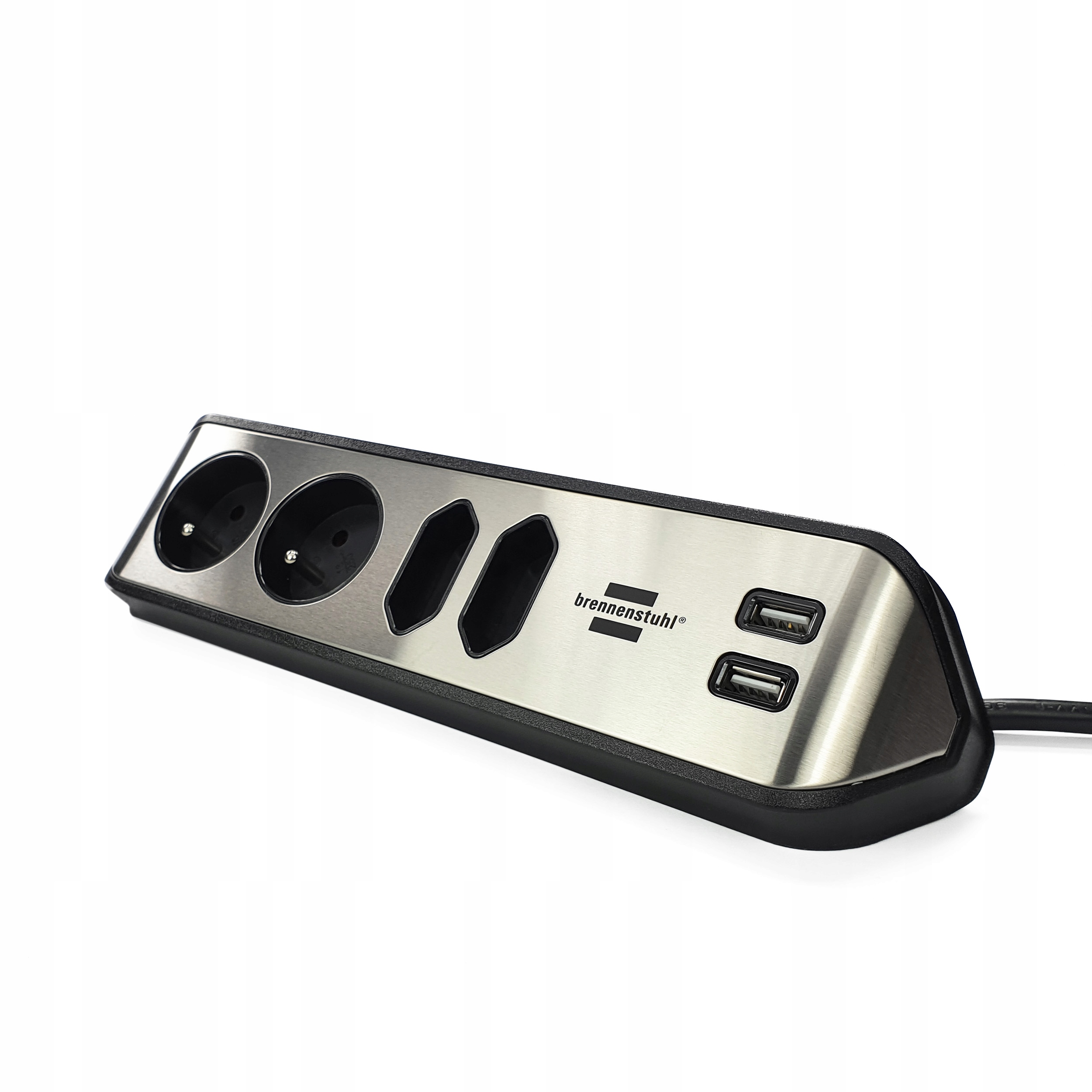 ✳️ 4-позиционный настольный удлинитель с 2 USB-разъемами (макс. 3100 мА для быстрой зарядки), штекерные розетки с защитным контактом на 45 В. ° наклона и 2 евророзетки с наклоном 90°.