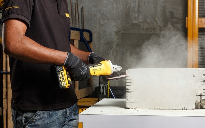 - Углошлифовальная машина оснащена бесщеточным двигателем постоянного тока 18 В