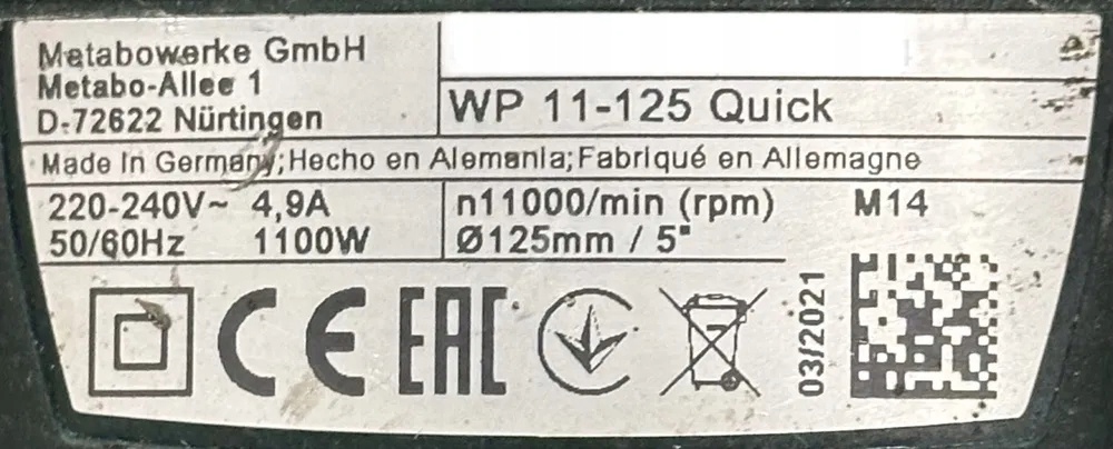 Просматривая «Угловая шлифовальная машина Metabo W 12-125 QUICK мощностью 1250 Вт. Эффективный. Я рекомендую это.», вы можете быть уверены, что данный товар из каталога «Остальные» будет доставлен из Польши и проверен на целостность. В цене товара, указанной на сайте, учтена доставка из Польши. Внимание!!! Товары для Евросоюза, согласно законодательству стран Евросоюза, могут отличаться упаковкой или наполнением.