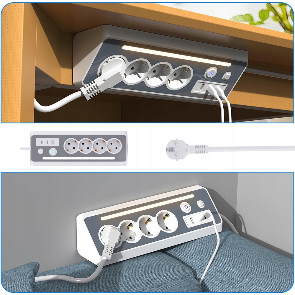 🔋 Несколько розеток с выключателями и светодиодами: Светодиодная лента дает мягкий, теплый свет. Вы не найдете удлинитель в темноте ночи. Он ведет вас быстро, не будучи резким. Эта светодиодная лента не бликует слишком сильно, когда вы пользуетесь телефоном. Двойные переключатели — вы можете использовать любой из них в любое время.