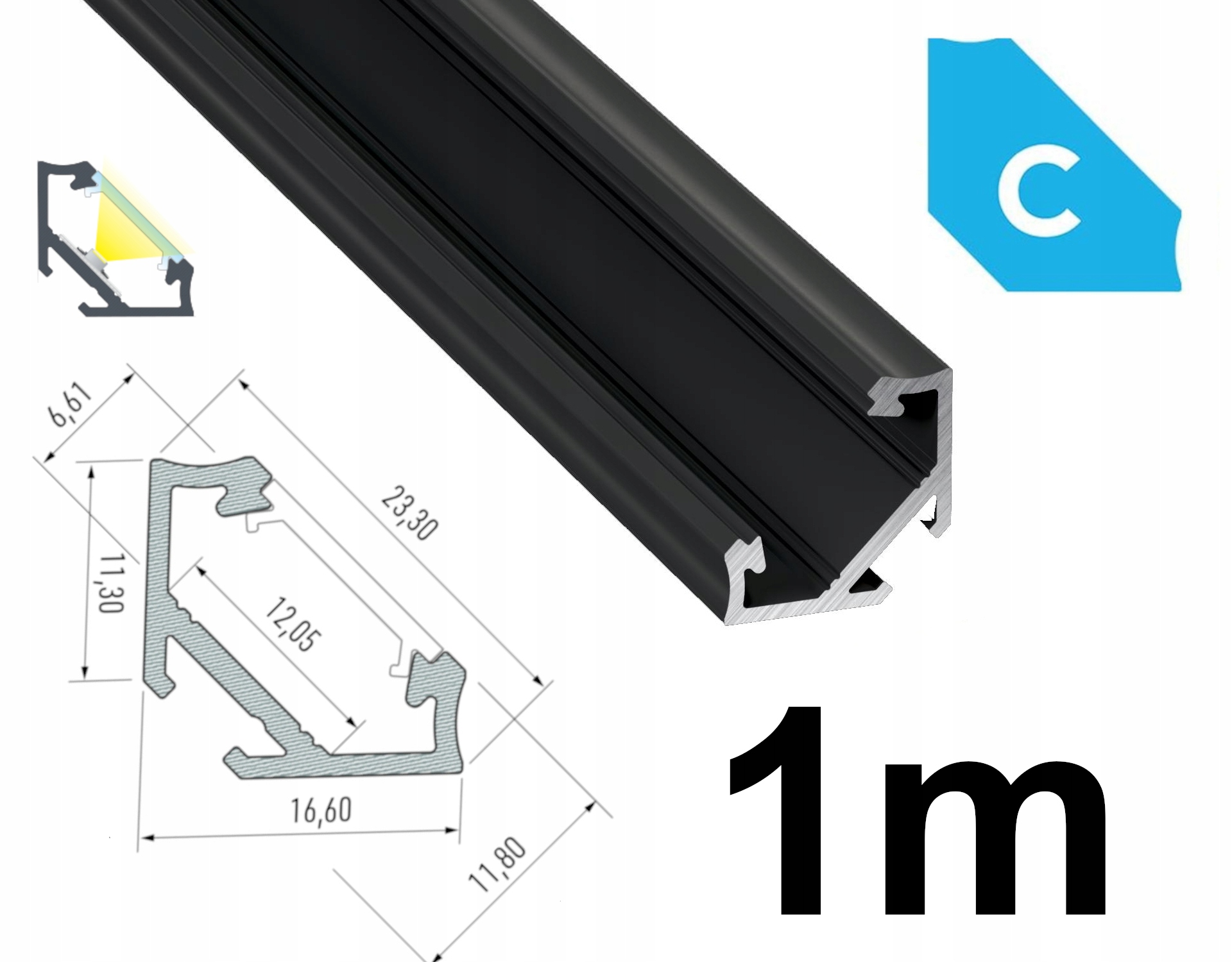 ПРОФИЛЬ ДЛЯ СВЕТОДИОДНОЙ ЛЕНТЫ АЛЮМИНИЕВАЯ ПОВЕРХНОСТЬ УГОЛ 45° ТИП C 1М ЧЕРНЫЙ АНОДИРОВАННЫЙ