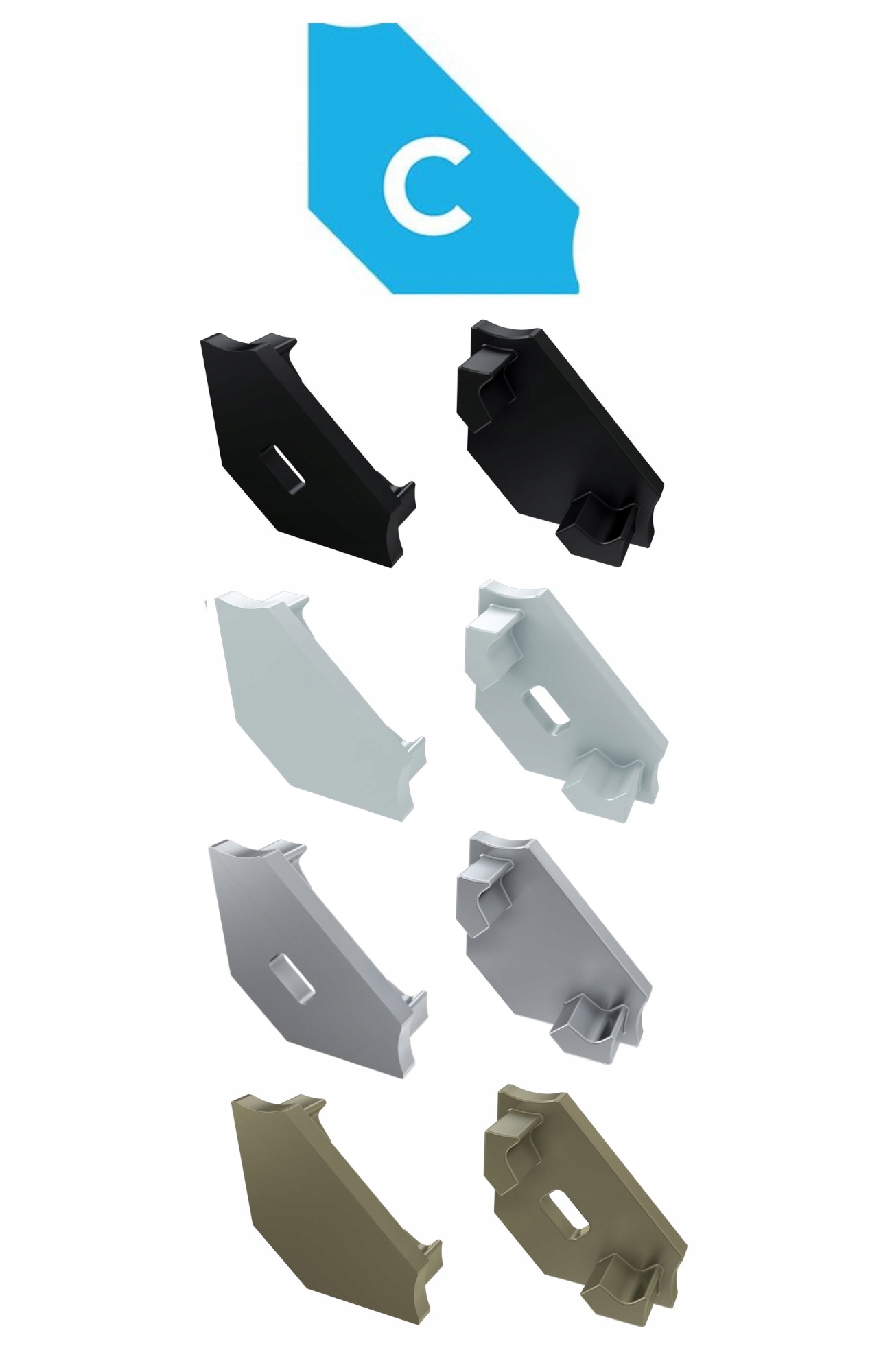 КОНЕЦ/БОКОВАЯ ЗАГЛУШКА ДЛЯ АЛЮМИНИЕВОГО ПРОФИЛЯ ТИПА D СЕРАЯ, ЧЕРНАЯ, БЕЛАЯ, INOX