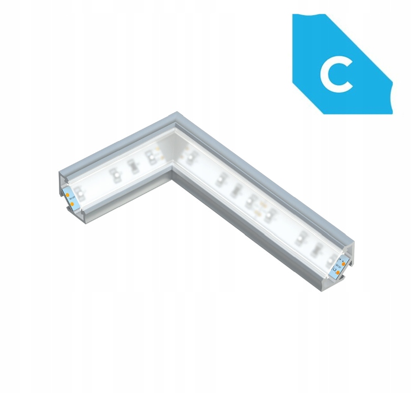 Алюминиевый профиль С угловой с углом наклона светодиодной ленты/ленты 45 градусов. Один из самых минималистичных и современных дизайнов. Идеально подходит для дизайнерского соединения двух перпендикулярных поверхностей и там, где необходимо направить свет, выходящий из профиля, под углом 45 градусов.