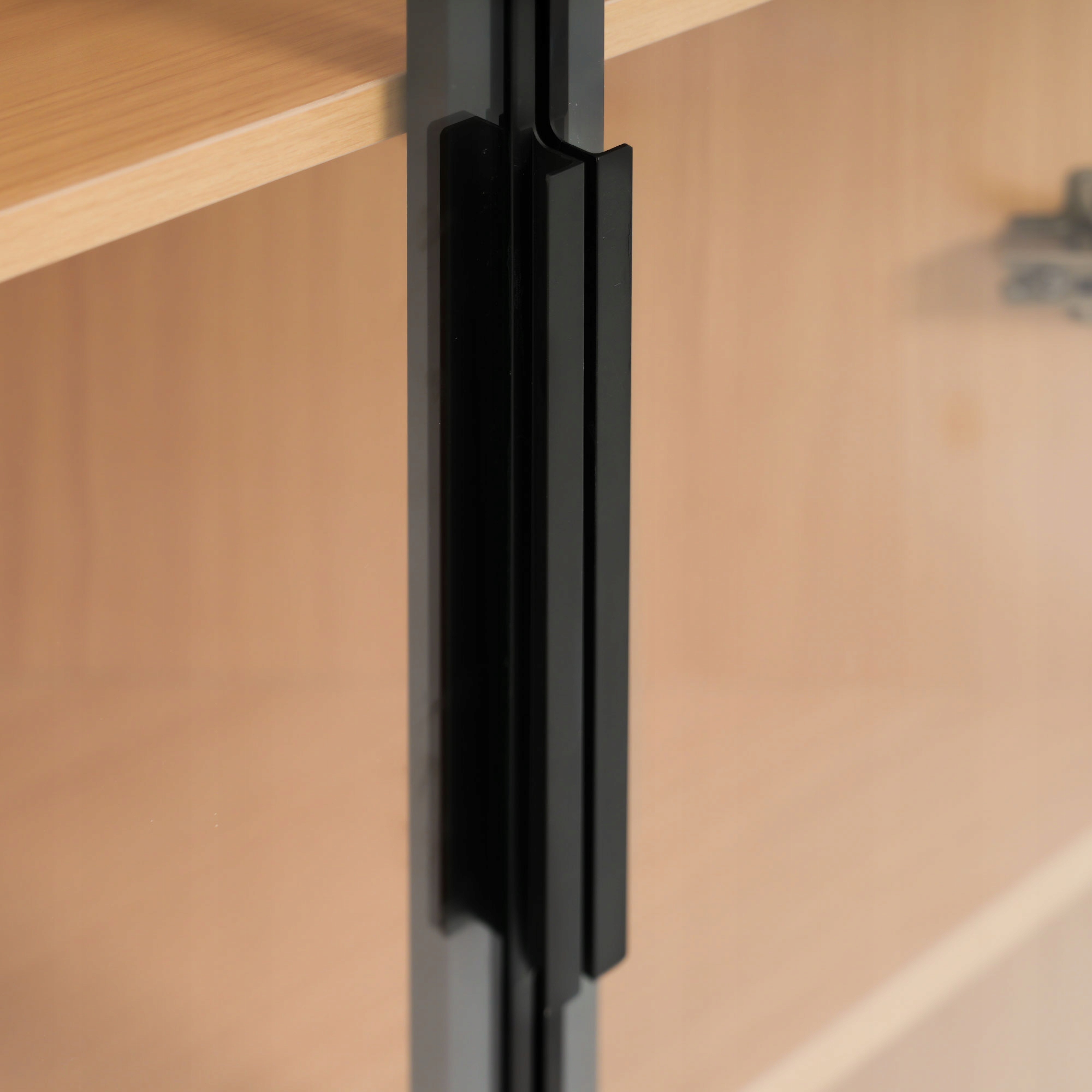 - Изготовление из прочного МДФ, имитирующего дуб, усиленные алюминиевые рамы и прочное безопасное стекло обеспечивают максимальную стабильность и неподвластную времени элегантность.