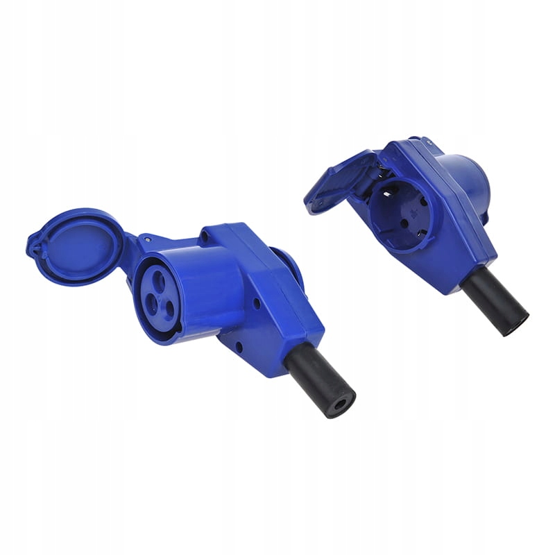 Вилка с розеткой Schuko на 230 В. Благодаря этому типу вилки мы подключаем автомобиль к электричеству за один раз и имеем выходной ток в виде розетки.