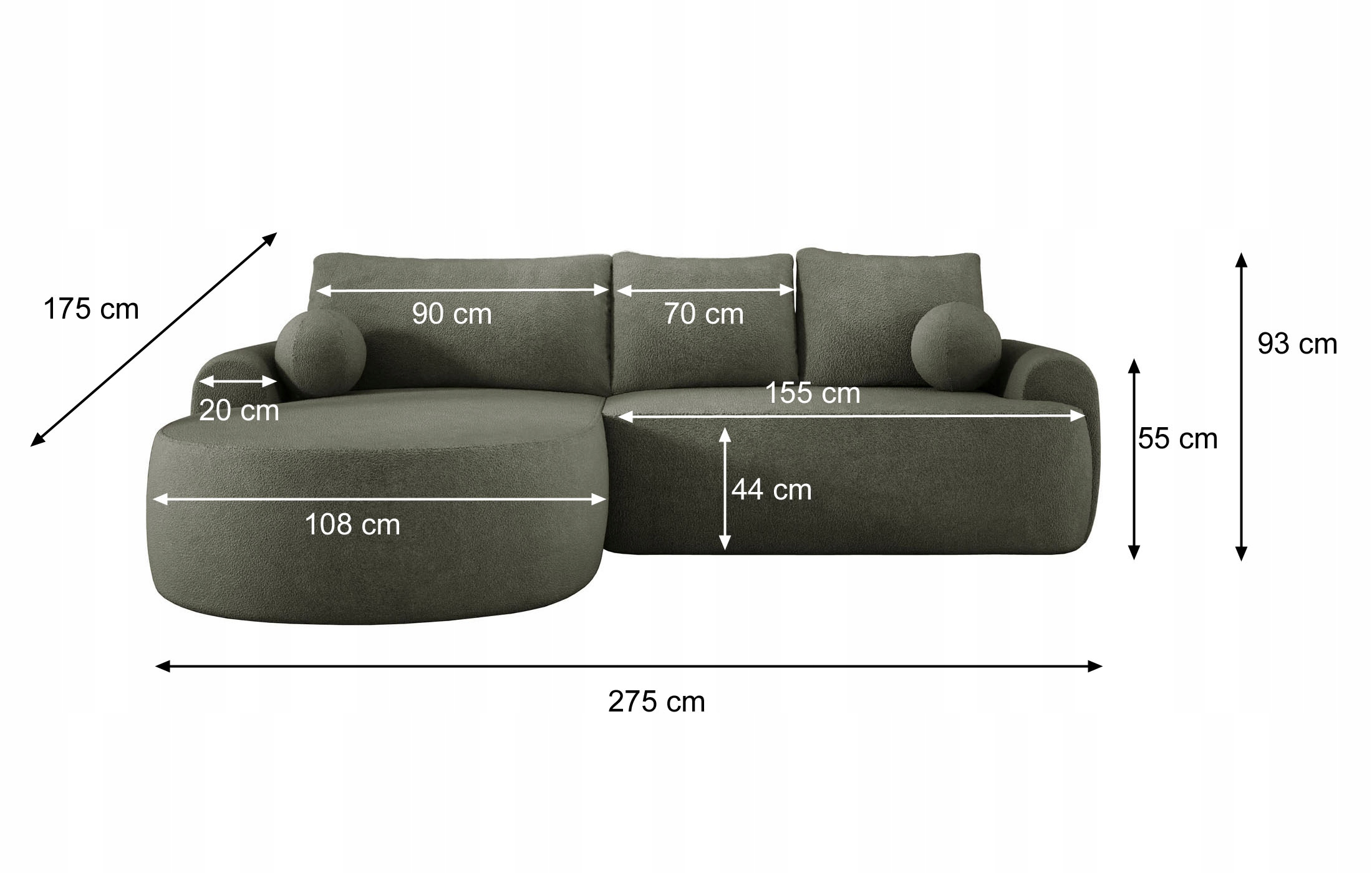 - общая глубина: 175 см.