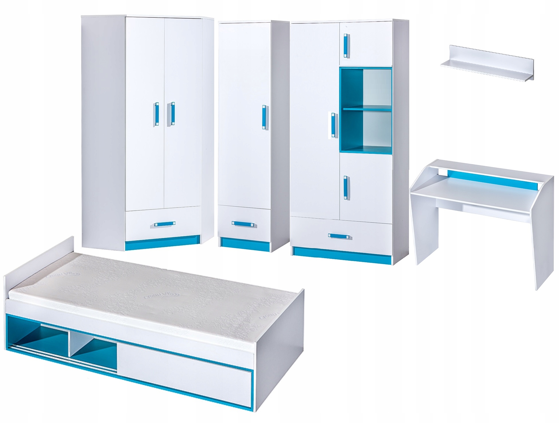 система состоит из: шкафы, полки, комоды, тумба под телевизор, письменный стол, тумбочка, кровать, полки