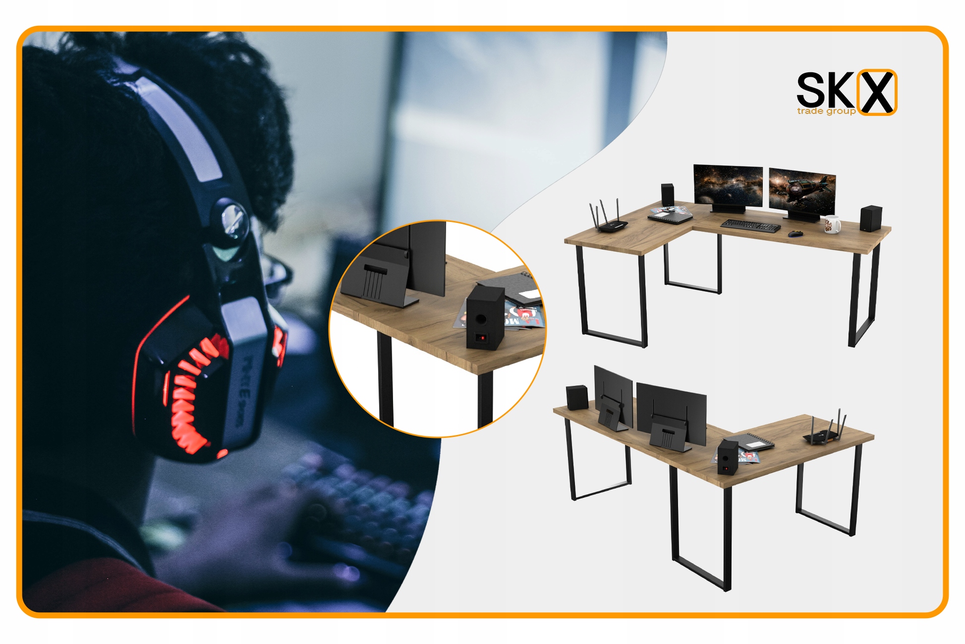 КУТОВИЙ ІГРОВИЙ СТІЛ ДЛЯ ГЕЙМЕРОВ 36ММ ЛОФТ