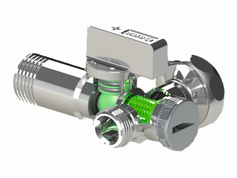 Клапан позволяет просто и легко соединить два устройства в одной точке. Это может быть стиральная или посудомоечная машина с диаметром резьбы 3/4 дюйма, а также стоячий смеситель или бачок с диаметром резьбы 3/8 дюйма. Оба устройства закрыты одним общим клапаном. Его характерной особенностью является система защиты от накипи, существенно продлевающая надежную работу клапана, и фильтр, защищающий подключенные устройства от загрязнения.