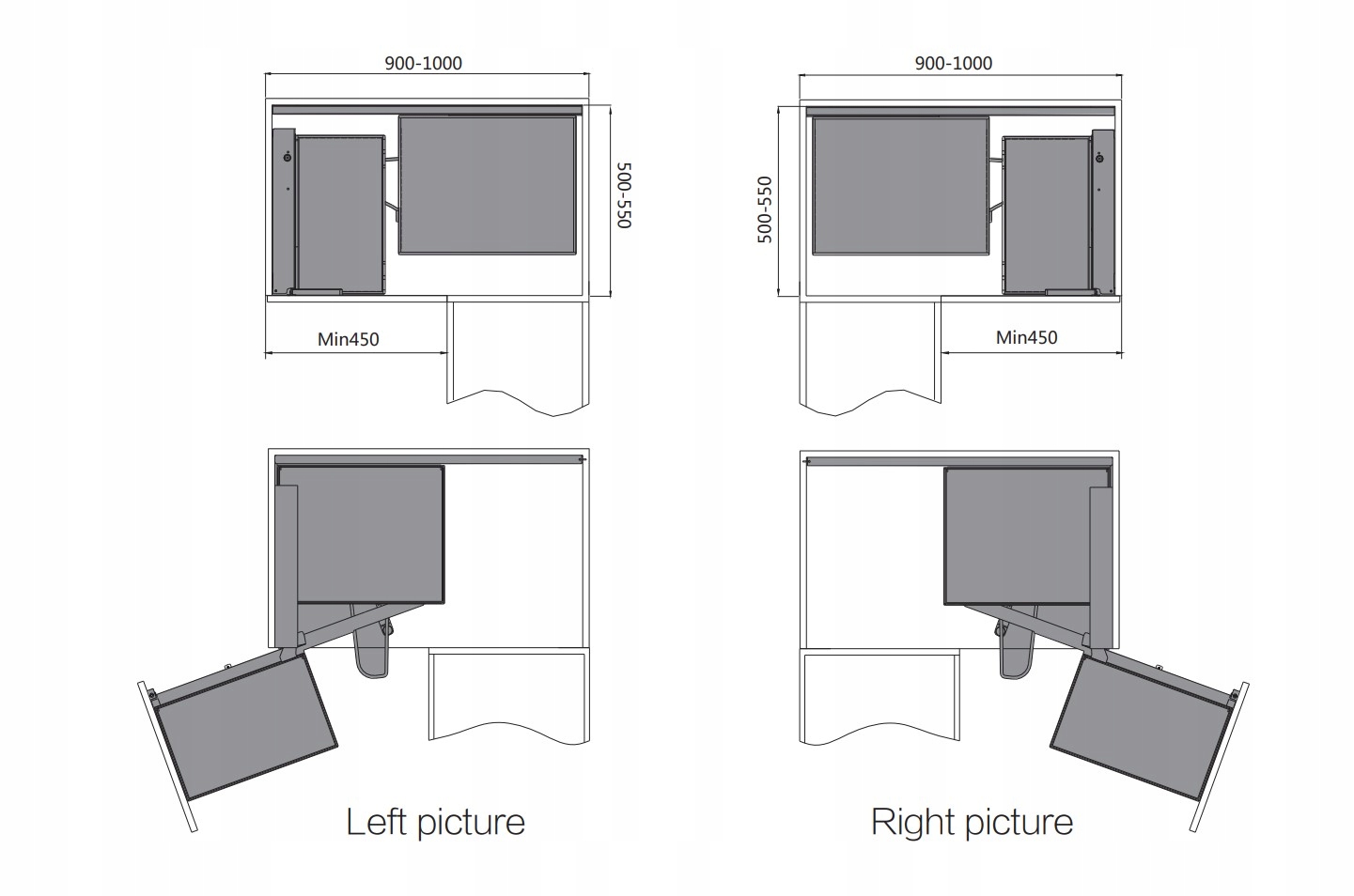 - для шкафа общей шириной мин. 900 мм (и 450 мм спереди)