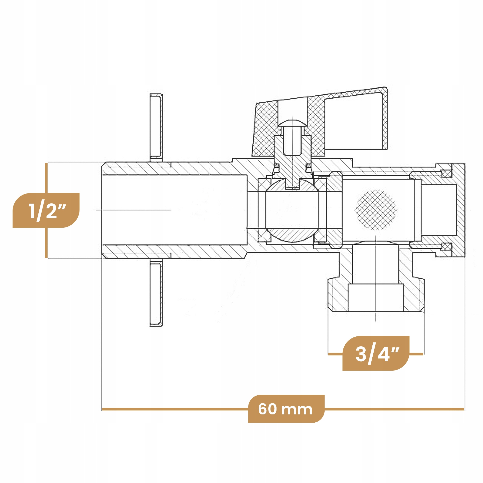 Угловой шаровой кран с фильтром Стандартная наружная резьба 1/2 дюйма x наружная резьба 3/4 дюйма