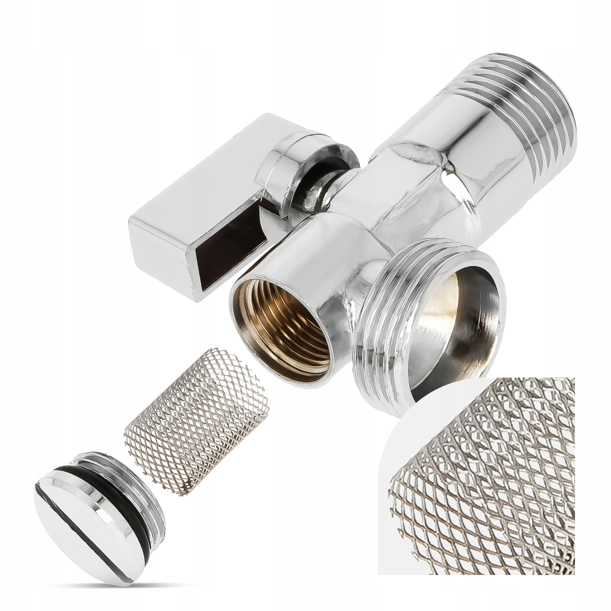 Кран оснащен сетчатым фильтром, задерживающим различные виды примесей. Благодаря этому, обеспечив подачу в стиральную или посудомоечную машину жидкостей хорошего качества, можно не беспокоиться о их случайной поломке.